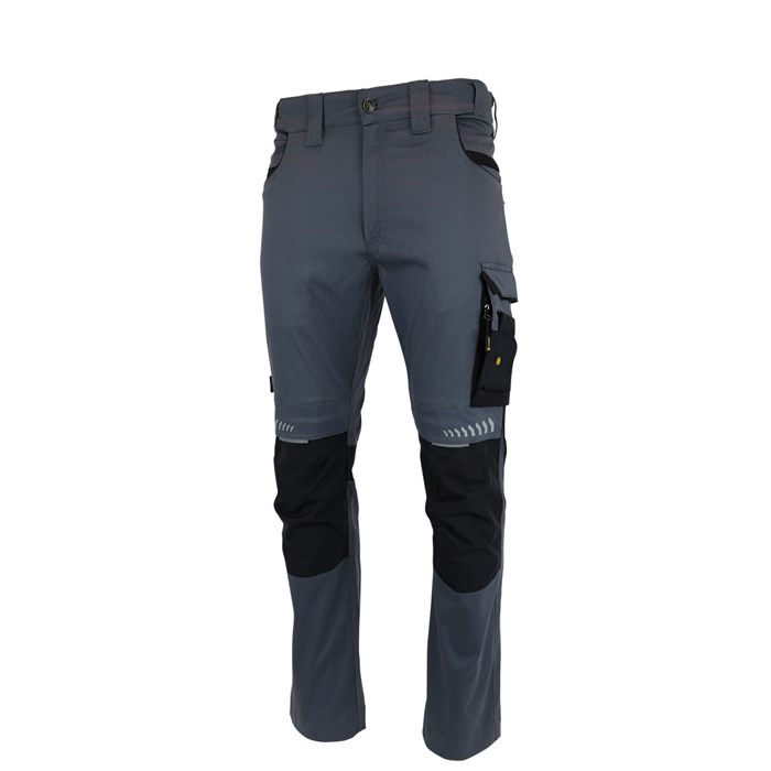Radne treger hlače PACIFIC FLEX sportskog izgleda. Kopča se skrivenim patent zatvaračem, ima više funkcionalnih džepova. Podesivi tregeri sa umetkom elastične tkanine u leđima. Dodatno pojačanje od tkanine CORDURA na koljenima s džepom za štitinke za koljena, reflektirajući elementi radi bolje uočljivosti. CORDURA pojačanje na bočnom i stražnjim džepovima. Samopodesiva pojasnica. Uži, ergonomski kroj.